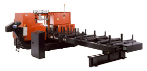 在HA系列帶鋸床的基礎上搭載了NC程序機能,可以最多輸入99項切斷任務,實現自動化不等長編程送料、切斷。設備擁有后臺監控機能,同時還標準配備帶鋸條在線切斜檢測功能和材料自動前端定位功能。