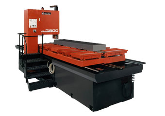 針對板材切割而專門設計的立式帶鋸床。設備采用工作臺移動的方式使得鋸弓的剛性較傳統的鋸弓移動式更高,切削效率更高、更穩定,更適合模具鋼之類的難切削材料的切斷加工。