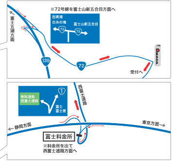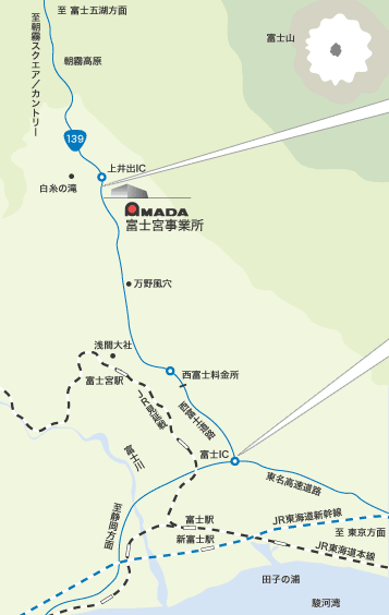 富士IC→西富士道路→國道139號線(約25分)上井出ICより3分。